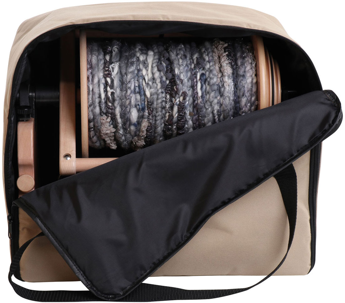 portable electronic spinner! It has the huge flyer and bobbin of the Country Spinner 2 and the power, versatility and portability of the e-Spinner 3 - what more could you want? Spin all types of yarn - fine yarns, chunky yarns, creative yarns, textured yarns and of course all your plying.